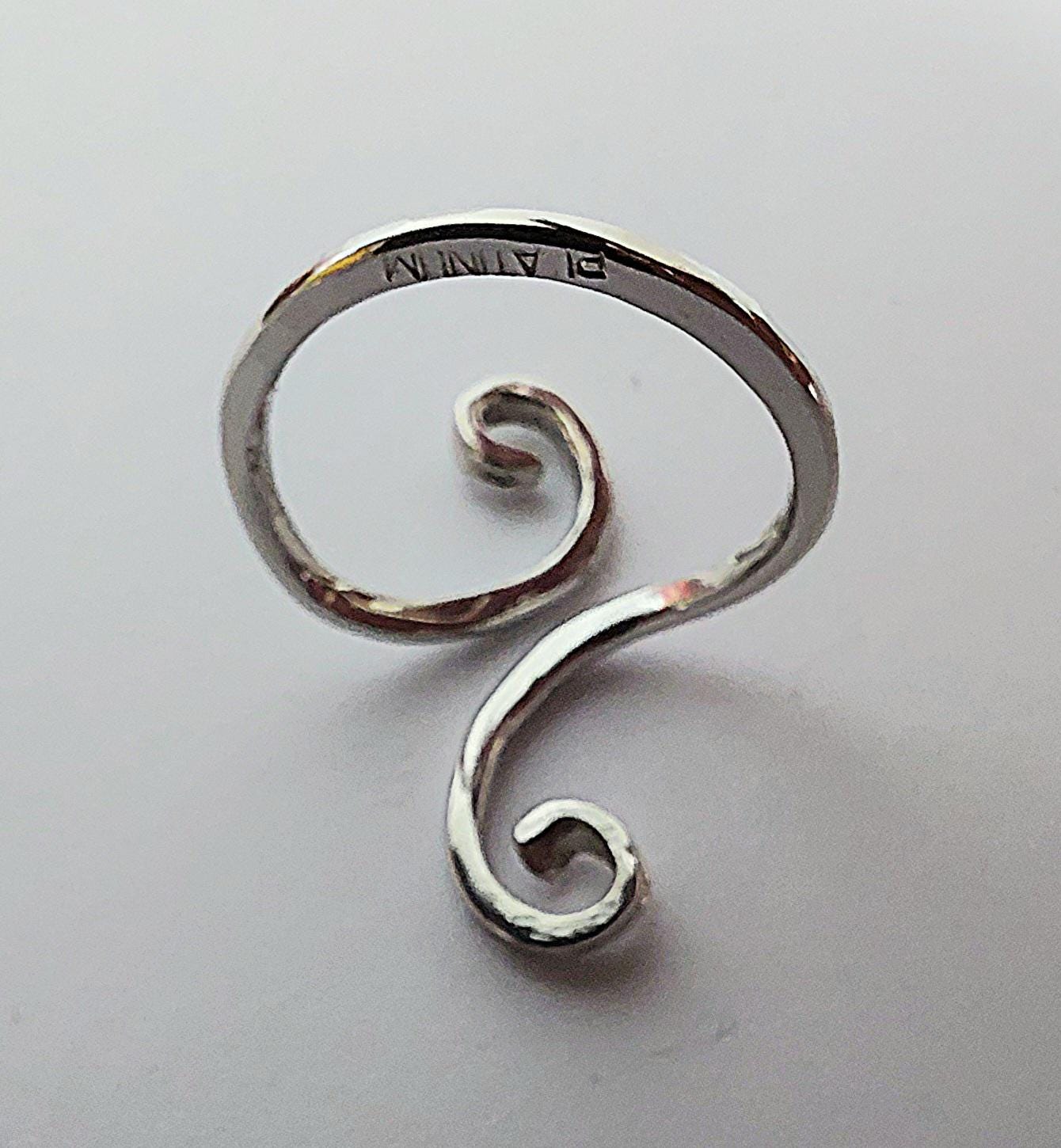 Platinum has a unique shine and does not tarnish like sterling silver. Much tougher than high karat gold, this slim curving ring stands out with its unusual hammered texture and beautiful metal color. Platinum is a strong, extremely rare metal that resists wear over time. This unusual ring will last a lifetime and beyond. This size 6 ring weighs 3.9 grams.